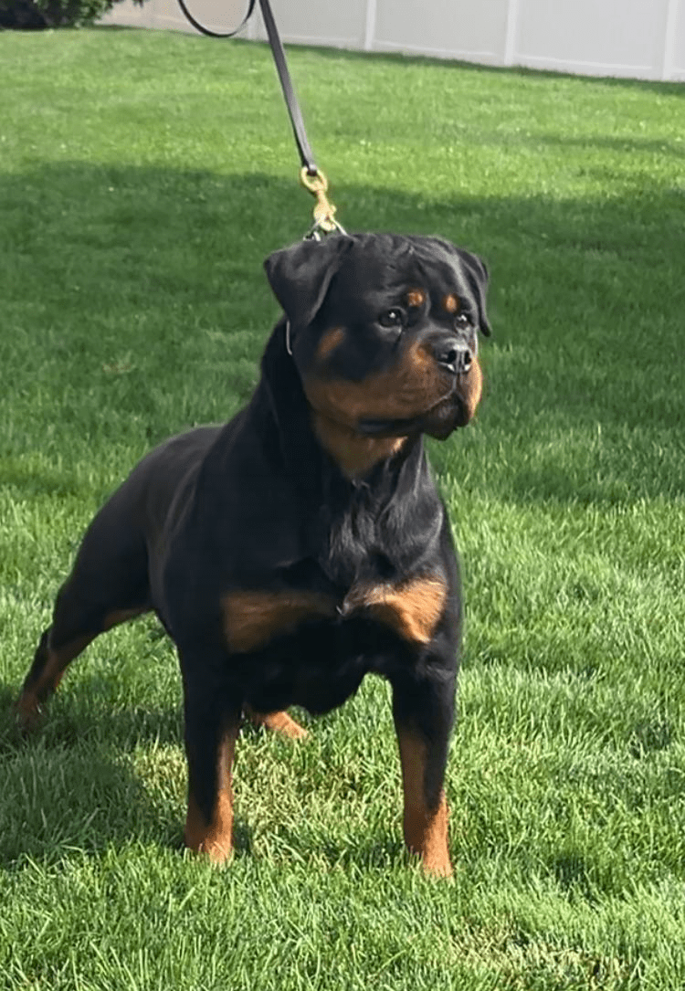 Please note: “smush-nosed” or brachycephalic Rottweilers with shortened muzzles do not meet breed standards and may face health issues such as respiratory difficulty, skin fold dermatitis, and eye problems. We encourage buyers to research and understand the risks associated with these bloodlines.